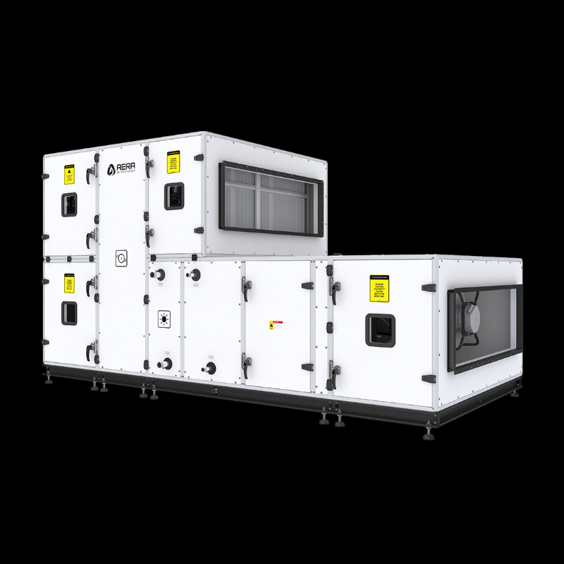 By the close of 2017, AERA broadened its portfolio with the introduction of the Compact Air Handling Units family. This range catered to diverse needs, including horizontal units for ceiling mounting and versatile standing units, both with plate and rotary heat recovery options.
