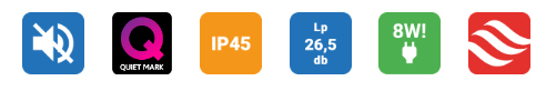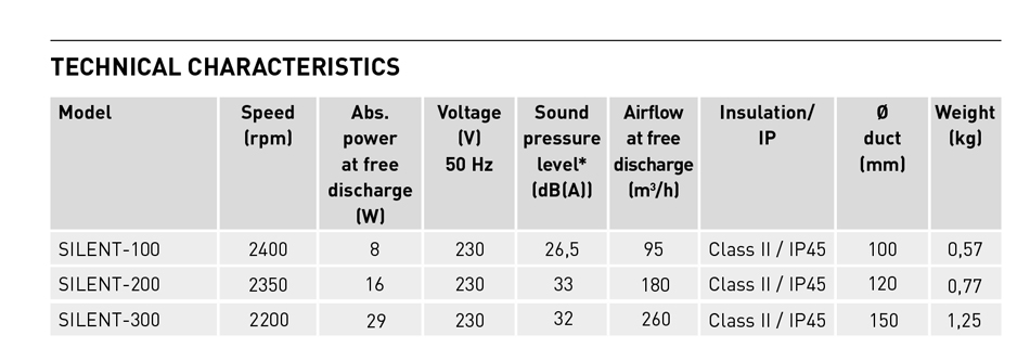 Range of axial extractors with airflow rates of 95 m3/h, for connection to 100 mm diameter circular ducting, 180 m3 /h, for connection to 120 mm diameter circular ducting and 260 m3 /h, for connection to 150-160 mm diameter circular ducting