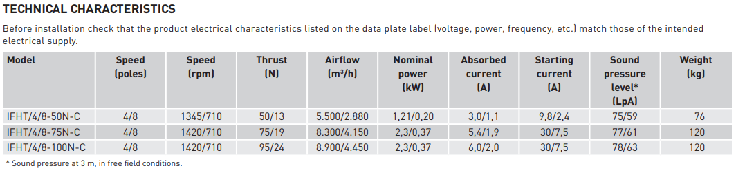 2 speeds 4/8 pole, connection type Dahlander.